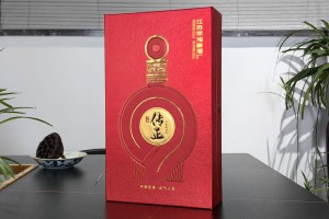 | 酒盒包装材质 | 金卡纸裱2.5mm板材,内衬植绒吸塑。表面海绵软包 |