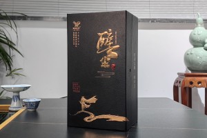 | 酒盒包装材质 | 金卡纸裱2.5mm板材,内衬植绒吸塑 |