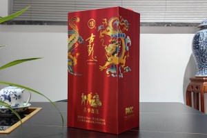 | 酒盒包装材质 | 金卡纸裱3mm灰板纸 |