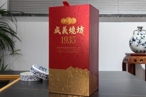 成义烧坊1935酒盒包装由新艺酒包装生产厂家打造,制作工艺精湛。生产过程严格遵循传统工艺和现代技术相结合,采用先进的印刷、烫金等工艺,确保每一款产品都具有高品质和独特的风格。生产厂家注重细节处理,保证每一道工序都精益求精,让酒盒包装*呈现。成义烧坊1935酒盒包装不仅实用耐用,还展现了生产厂家对工艺的用心和专注,为产品增添了独特的魅力。